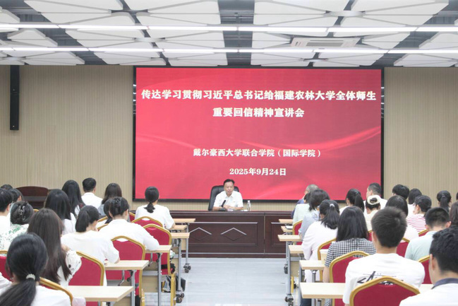 校领导强调,全校师生要把学习好、宣传好、贯彻好习近平总书记重要回信精神作为当前和今后一个时期的首要政治任务,以实际行动坚定拥护“两个确立”,坚决做到“两个维护”。一要掀起学习热潮,推动入脑入心。通过召开校院两级党委理论学习中心组学习(扩大)会、系列学习研讨会、专题学习座谈会、党支部主题党日和“三会一课”等多种形式,深入开展学习交流研讨,迅速掀起学习宣传贯彻重要回信精神热潮,引导师生深刻理解重要回信的重大意义、丰富内涵和实践要求,推动学习入脑入心、见行见效。二要细化落实举措,压实工作责任。要将贯彻落实回信精神与学院“十五五”规划相结合,与当前的重点工作相结合,确保各项工作任务落到实处。要建立健全工作责任制,明确责任分工,加强督促检查,确保习近平总书记重要回信精神在学院落地生根、开花结果。三要强化使命担当,服务发展大局。坚持以立德树人为根本,以强农兴农为己任,牢记为党育人、为国育才的初心使命,不断提高教学水平和科研能力,努力培养更多高素质农林人才,把更多好技术送到田间地头,为奋进国家“双一流”添砖加瓦,为推进乡村振兴、建设农业强国作出新的更大贡献。
