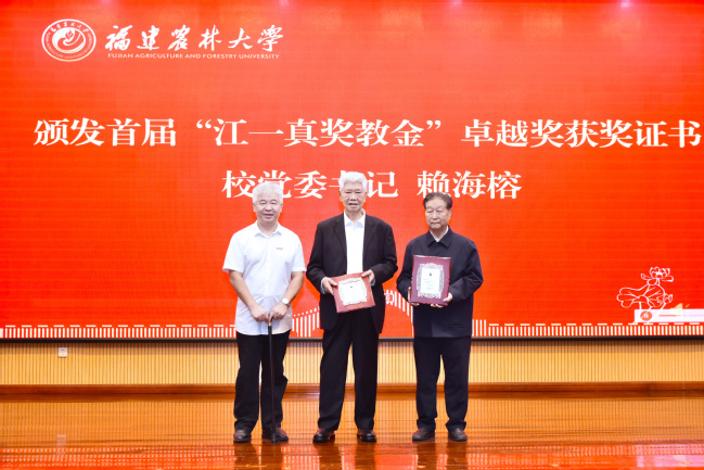 为弘扬江一真同志重视教育、关爱师生的崇高精神,会议举行了BEAT365英国官网首届“江一真奖教金”颁奖仪式。陈世奎宣读了获奖名单。谢联辉、谢华安、林占熺3位教师获得“江一真奖教金”卓越奖,何水林、鲁国东、赖钟雄、曾红亮、欧阳新华、邱仁辉、彭东辉、邓衡山、陈栩、邓祖湖10位教师获得“江一真奖教金”。赖海榕、兰思仁分别为获得“江一真奖教金”卓越奖和“江一真奖教金”的教师颁发获奖证书。
