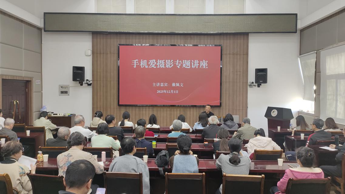戴佩文老师从手机摄影功能为切入口,结合自身多年的摄影实践经验与丰富的教学经历,用通俗易懂的语言打破了老同志们对“摄影门槛高”的固有认知。结合大量自己拍摄的优秀作品,从构图、光线、色彩三个维度展开深入分享。参与讲座的退休老同志纷纷表示,这次讲座内容贴近生活、实用性极强,不仅学会了手机摄影的实用技巧,更激发了用镜头记录晚年生活的热情。
