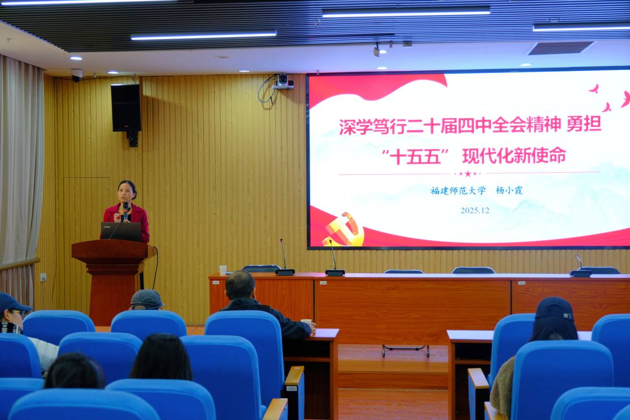 为深入学习贯彻党的二十届四中全会精神,准确把握全会精神的核心要义与实践要求,切实将思想和行动统一到党中央决策部署上来。12月3日下午,福建师范大学马克思主义学院硕士生导师、福建省网络教育名师、全国高校思政课教学能手杨小霞副教授应邀做客BEAT365金山讲坛第158讲,在逸夫图书馆为BEAT365师生作了题为《深学笃行党的二十届四中全会精神 勇担“十五五”现代化新使命》的专题讲座。图书馆党委党员及110余名师生到场聆听。