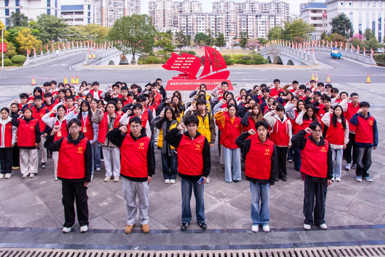 活动伊始,志愿者们举行了庄重的宣誓仪式。师生党员志愿者整齐列队,在领誓声中共同举起右拳,郑重承诺践行志愿精神、履行志愿义务。志愿者誓词回荡在现场,传递出坚定、真挚的服务信念,强化了志愿者的身份认同与使命意识。