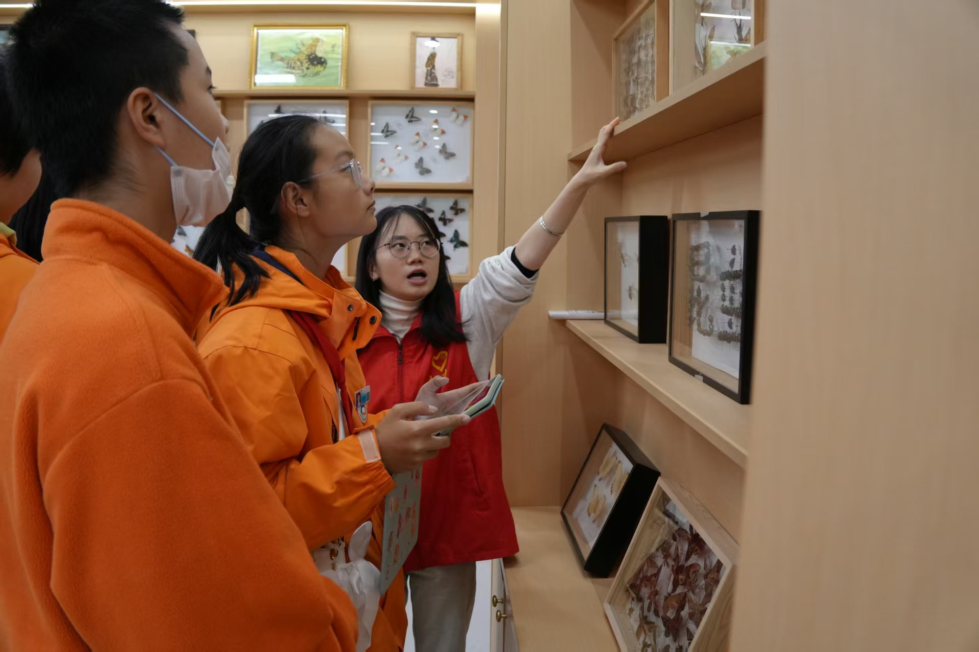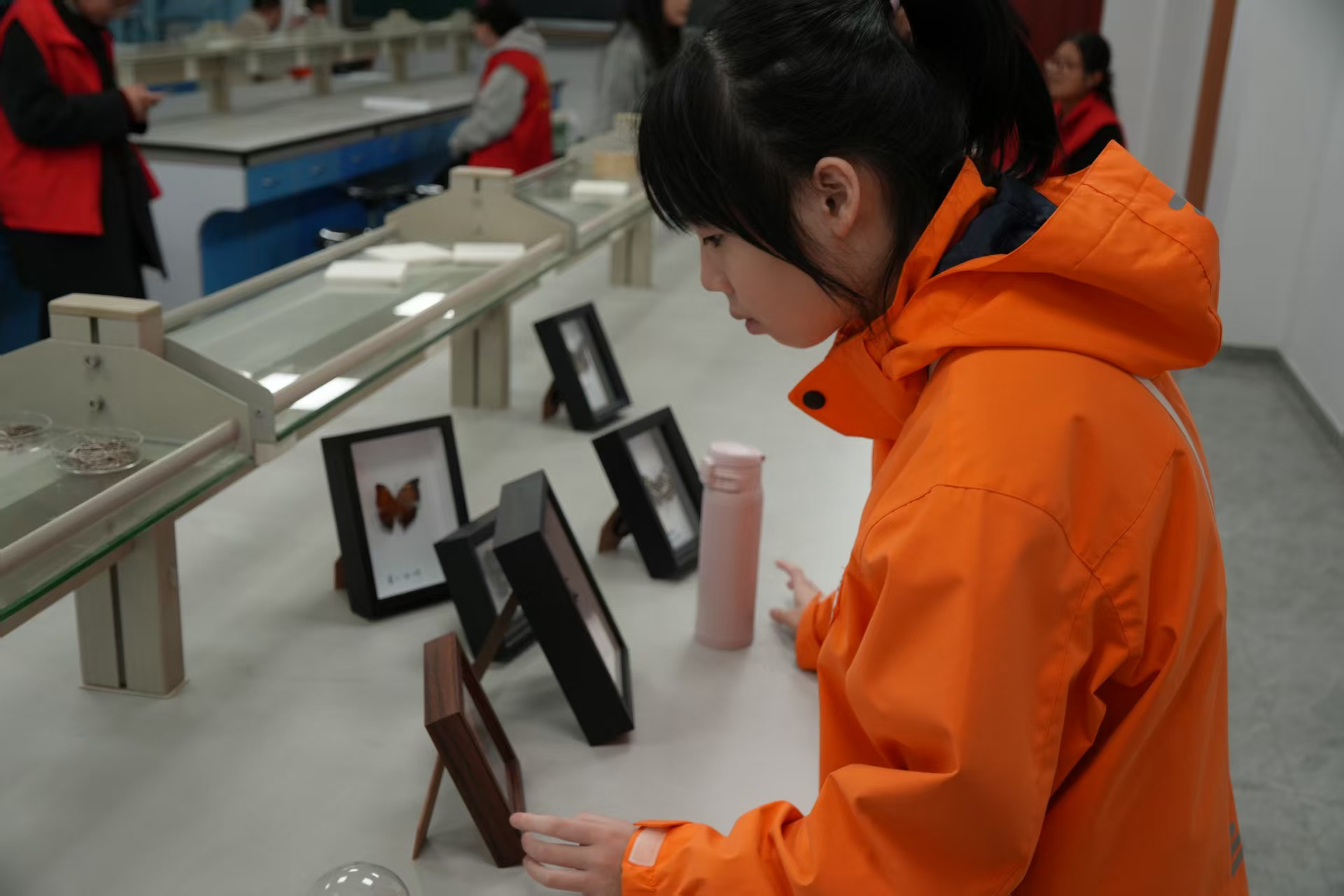 12月27日,植物保护学院在博学楼4楼昆虫标本馆举办“探索昆虫世界,启迪科学梦想”主题科普开放日活动。活动邀请屏东中学学生参加,在“植此青绿”志愿服务队志愿者的全程引导下,同学们通过邮票文化与昆虫知识相融合的展示,在方寸邮册与斑斓虫翼之间,开启了一段充满发现与惊喜的探索之旅。