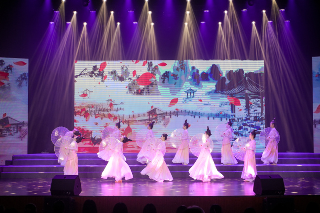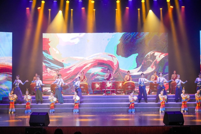 公共管理与法学院艺术团带来的舞蹈《锦绣中华 舞韵同心》,各具特色的民族服饰及歌舞表演,展示了中华文化的绚丽多姿,传递了各民族及两岸同胞同心共筑中华民族伟大复兴梦的美好愿景。