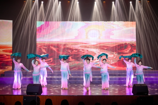 校老体协舞蹈团表演的舞蹈《黄河源头》,以舒展流畅的肢体语言,传达了黄河文化的精神力量,它历久弥新,鼓舞福农人为实现中华民族伟大复兴奋斗不息。