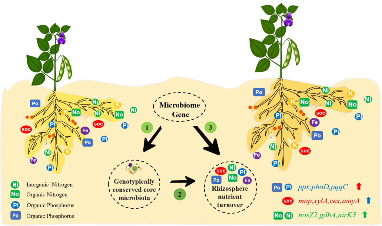 图3 大豆基因型-核心微生物群-根际养分周转调控示意图