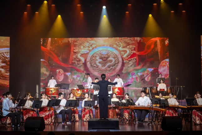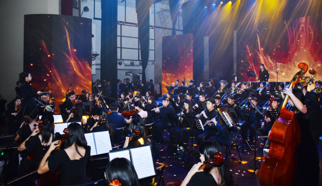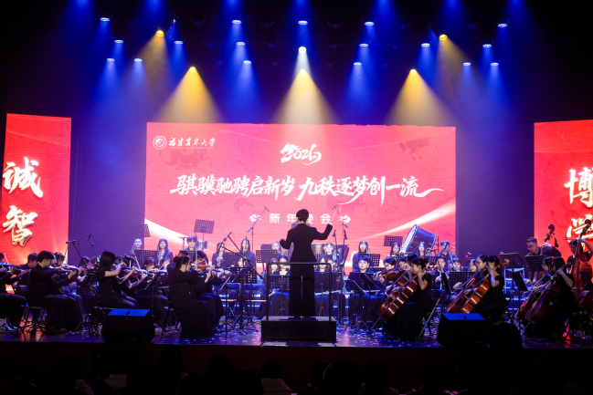 晚会的终章由校大学生交响乐团倾情演绎,德沃夏克《e小调第九交响曲》第四乐章选段、约翰·施特劳斯《拉德斯基进行曲》选段相继奏响,大气恢宏、铿锵激越的旋律完美融合古典音乐的深沉磅礴与节日气氛的喜庆欢腾,传递出福农人对未来发展的坚定信心与共创一流的坚定信念,将现场气氛推向了高潮,晚会圆满落下帷幕。