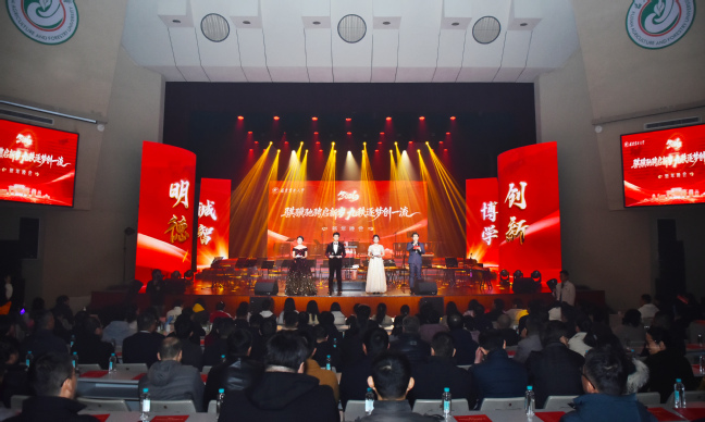 新年晚会以“骐骥驰骋启新岁 九秩逐梦创一流”为主题,展现了师生踔厉奋发、锐意进取的精神面貌。由校大学生民乐团带来的开场民乐合奏《赛马》《龙腾虎跃》,旋律激昂澎湃、振奋人心,展现万马奔腾、龙虎争跃的热烈场景,寓意福农人开拓进取的闯劲与厚积薄发的力量,瞬间点燃全场热情。