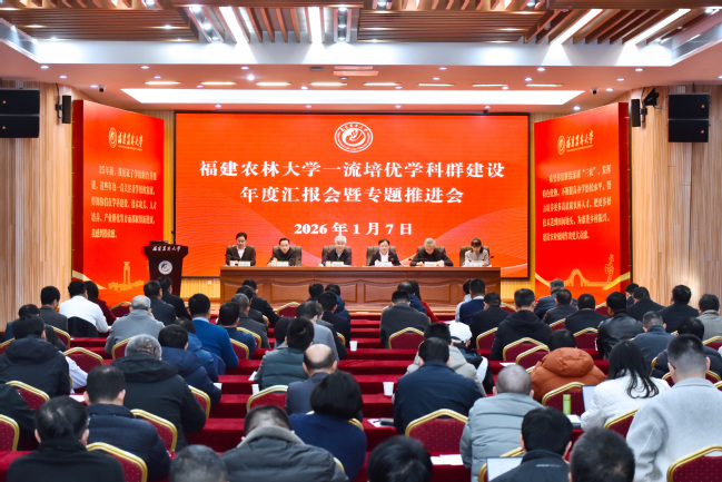 赖海榕作总结讲话。他指出,2026年是学校奋进“双一流”征程中至关重要的一年。此次召开一流培优学科群年度汇报会暨第四次专题工作推进会,既是一次前一段工作的总结部署会,也是新年的动员会。他强调,当前“双一流”建设已进入攻坚期、决胜期,全校师生要全力以赴推动学科群建设向更深层次、更高水平迈进。一要强化战略统筹,深刻把握学科群建设的全局意义。学科群建设是学校提升核心竞争力、实现“双一流”突破的关键抓手,是一项必须集全校之力攻坚的系统性、阶段性工程。要坚持全校“一盘棋”,深化群内学科协同机制,构建“主干引领、支撑赋能”的良好学科生态。二要突出精准传播,系统展示学科群建设的扎实成效。加大学科群宣传力度,立足5-10年长周期建设数据,高度凝练学科群发展的持续积淀与跨越突破,充分展现近一两年的突出成果及特色亮点,确保内容客观全面、表达精准到位、传播持续深化,不断提升植物保护和林学一流培优学科群的社会认可度。三要坚持靶向发力,着力提升学科群建设的核心实力。围绕国家重大战略需求和区域发展急需,强化有组织科研,用好用足冷冻电镜等科研重器,努力产出更多原创性、引领性重大创新成果。紧盯“四重”关键核心指标,瞄准战略科学家、国家成果奖、国家重大重点项目、国家科研平台、科技成果转化率等标志性目标,集中优势力量,实施重点突破,彰显一流培优学科群硬核实力。四要深化产教融合,不断强化学科群建设的服务效能。结合学校“十五五”规划编制,再培育和打造5-10个科技创新与产业创新深度融合的“单项冠军”成果,持续提升学科群服务国家战略的契合度与支撑产业发展的贡献度,同时系统梳理、生动讲好学科群服务产业发展的实践故事,提升一流培优学科群的综合竞争力与社会影响力。五要深化开放办学,积极拓展学科群建设的发展格局。加强与头部高校及顶尖科研机构的战略协作,着力在重大科研项目联合攻关、高端人才联合培养、科研平台共建共享等方面取得实质性突破,借势提升原始创新能力。立足福建区位优势,加大对外交流合作,深化与东南亚、南太平洋岛国等“一带一路”沿线地区的科教合作,全面提升学科群国际影响力。六要完善体制机制,持续优化学科群建设的制度保障。充分发挥政策的指挥棒作用,深入推进评价体系改革,建立与种业创新等长周期科研特征相适应的评价周期与激励机制,通过构建分类科学、导向清晰、激励有效的制度体系,引导科研人员聚焦国家重大战略需求,持续深耕关键核心技术领域,为学科群高质量发展提供坚实的制度支撑与保障。