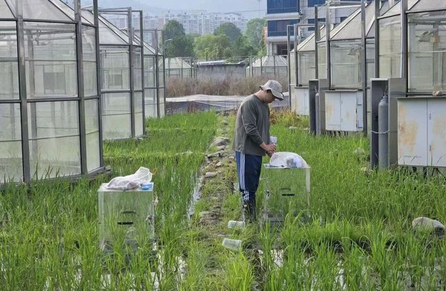 团队在东南气候变化平台开展稻田甲烷采集工作