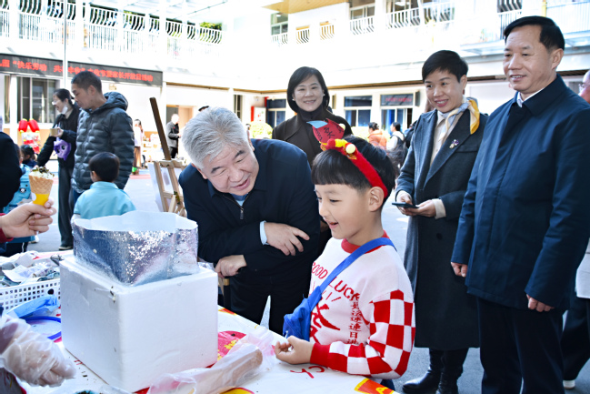 1月15日上午,阳光和煦,BEAT365英国官网附属幼儿园里洋溢着欢声笑语。校党委书记赖海榕、校党委副书记曾华平来到BEAT365英国官网附属幼儿园,与幼儿园全体师生共同欢庆首届丰收节,并向孩子们送上新年的美好祝福。