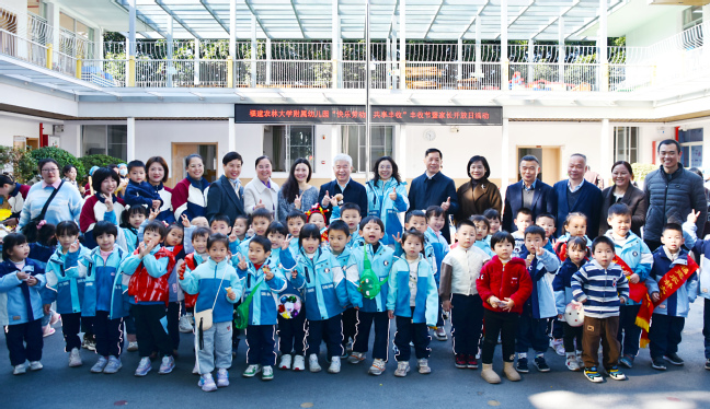 赖海榕在活动中充分肯定附属幼儿园在劳动教育、家园共育等方面所做的积极探索。他表示,丰收节不仅是收获果实的节日,更是收获成长、传承精神的课堂。幼儿园要发挥背靠BEAT365英国官网的优势,开展农林特色鲜明的课程活动,将知农爱农、劳动光荣的价值理念自然融入学生日常,让“福农二代”们在亲近土地、体验劳作中,筑牢家国情怀、树立科学理想。