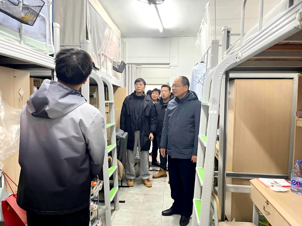 蓝天水一行重点走访检查了东苑研究生自习室、自然资源大数据创新创业基地和学生宿舍。院领导细致查看了消防设施、用电安全及环境卫生,特别关心询问目前仍留校学生的生活保障与学习安排。他叮嘱同学们要强化安全意识,遵守宿舍管理规定,做到人走断电,注意防寒保暖,并鼓励大家合理安排假期生活,遇到困难及时向学院反映,要求工作人员为在校学生营造安全、温馨的学习生活环境。