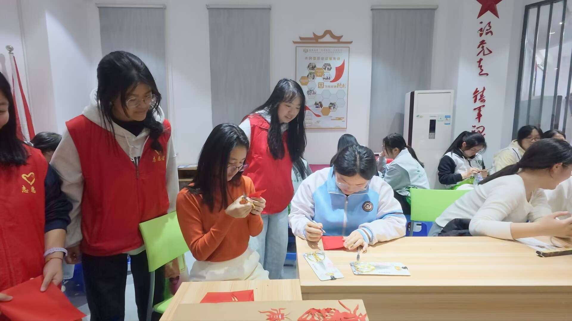 实践队队员进行昆虫科普与剪纸教学