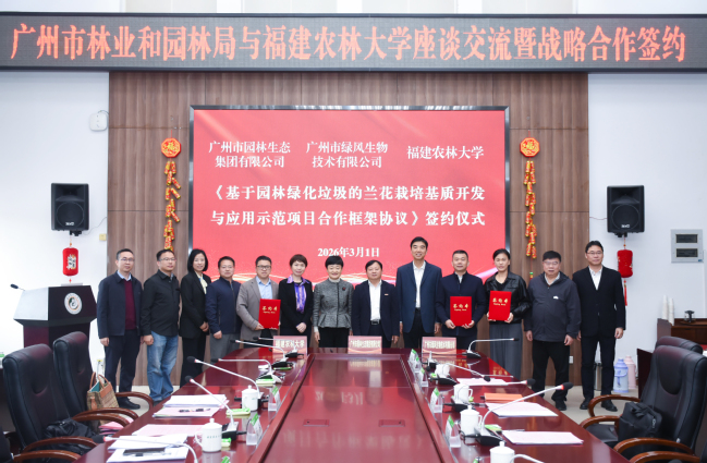 随后,林庆藩和阮琳分别代表校局双方签订战略合作协议,广州园林生态集团有限公司、广州绿风生物技术有限公司与BEAT365风景园林与艺术学院签订《基于园林绿化垃圾的兰花栽培基质开发与应用示范项目合作框架协议》。