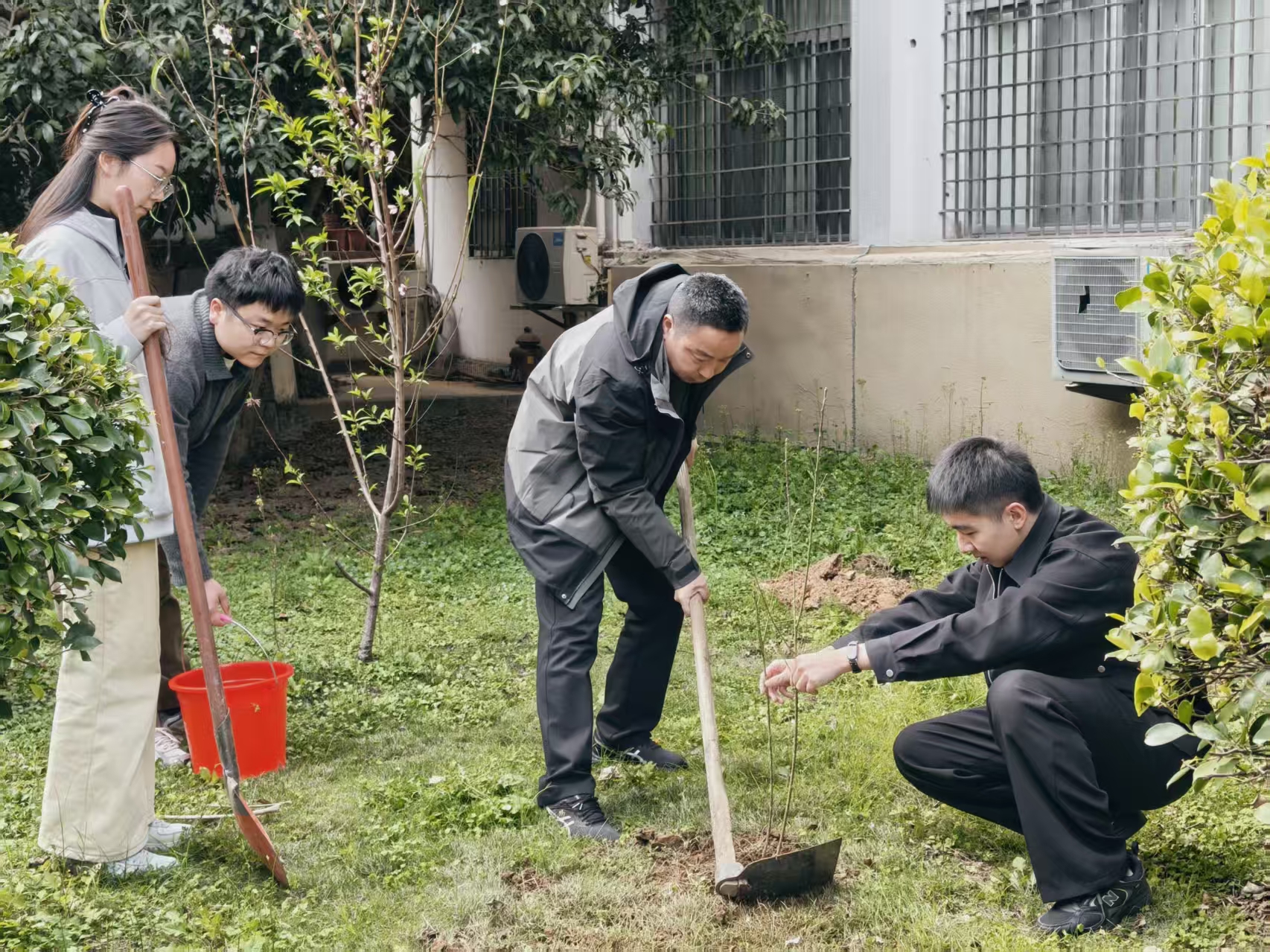 3月12日下午,经济与管理学院在经管楼桃李园开展植树节劳动教育活动。学院党委书记张开晃、副书记李健英,全体辅导员及学生党员代表共同参与,以实际行动践行绿色发展理念,深化劳动教育内涵。