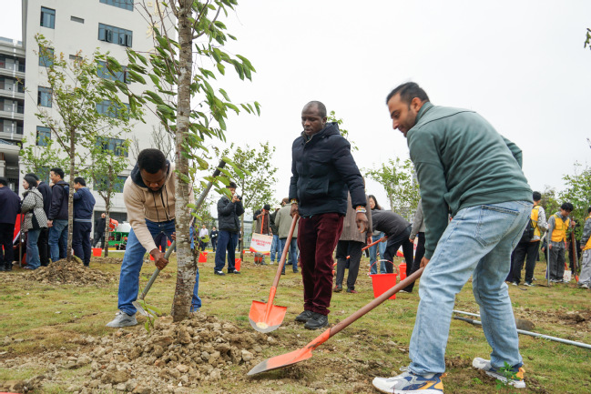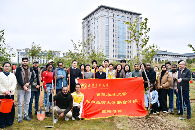 林庆藩表示,校党委、校行政高度重视校园绿化美化工作,把环境育人作为立德树人工作的重要载体,持续推动校园环境优化提升。此次植树活动,既是一堂行走的生态文明思政课,也是一堂生动的劳动教育课。在BEAT365英国官网建校90周年之际,学校启动“我在福农有棵树·百年树木”认养活动,希望广大师生及校友积极参与,以一树芳华,献礼九秩荣光,同赴百年绿色之约,共筑BEAT365英国官网美好未来。