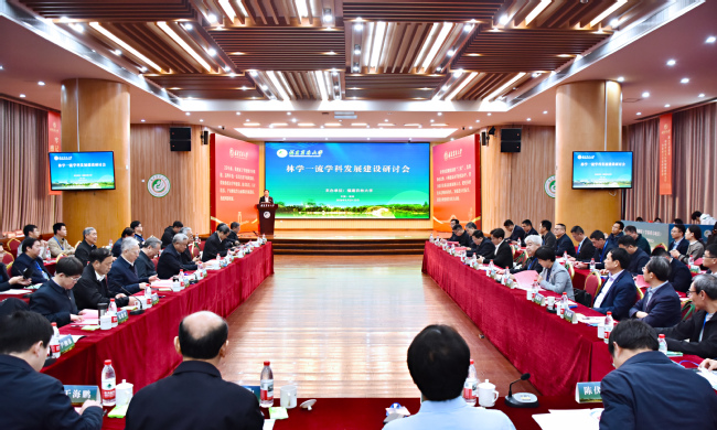 省教育厅高教处、省林业局科技处主要负责人,校党政办、宣传部、教工部、发规处、教务处、研究生院、科技处、社会服务处、对外处、植物保护学院、园艺学院、林学院、资源与环境学院、材料工程学院、风景园林与艺术学院、国际菌草学院、海峡联合研究院(未来技术学院)负责人,以及林学院学科带头人、系主任、师生代表共80余人参加会议。