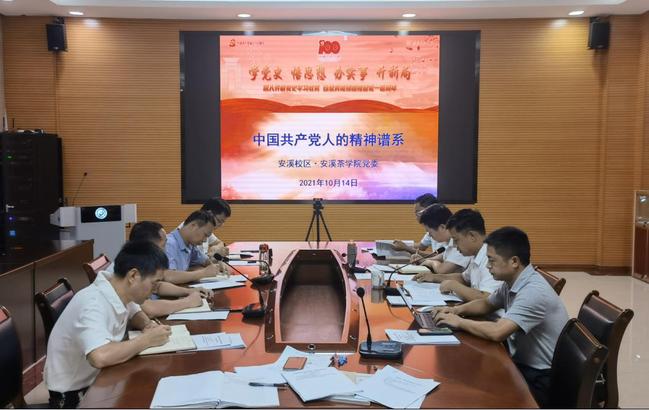 10月14日,安溪校区·安溪茶学院党委召开理论中心组学习会,专题学习中国共产党人的精神谱系,校区·学院党委党委书记连文主持会议,中心组成员、教工党支部书记参加会议。