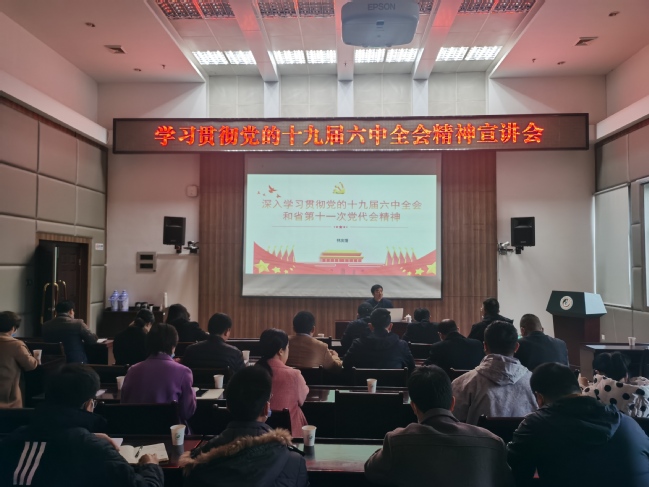 1月4日上午,副校长郑宝东在动物科学学院七楼会议室为分管联系的学院师生和机关部门教职员工作党的十九届六中全会精神和省第十一次党代会精神宣讲报告。郑宝东从深刻领会党的十九届六中全会和省第十一次党代会的重要意义、深入学习习近平总书记关于科技创新社会服务和对外交流合作的重要论述、将学习精神转化为推动学校高质量发展的强大动力三个方面进行了深入的解读。