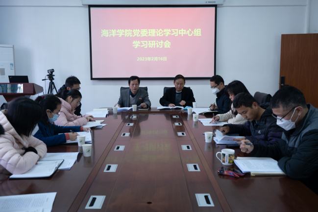 2月16日下午,海洋学院党委在学院会议室召开理论学习中心组专题学习研讨会。学院党委委员、领导班子成员、党支部书记、部分教学系(实验中心)负责人、科级干部、辅导员等参加。会议由学院党委书记黄毅军主持。