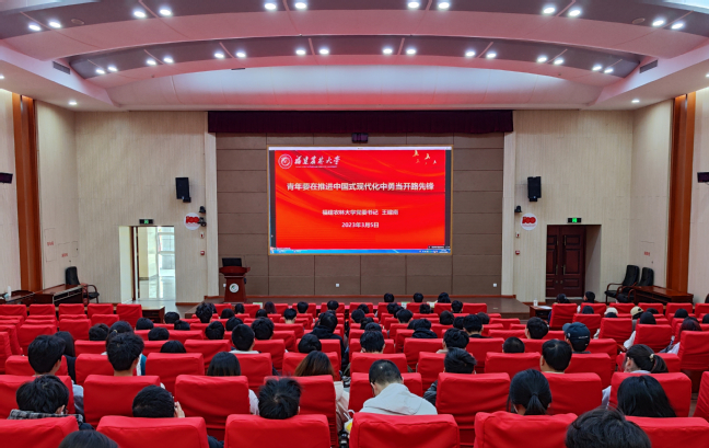 3月5日上午,校党委书记王建南以“青年要在推进中国式现代化中勇当开路先锋”为题,通过线上线下相结合的方式为青年师生讲授“开学第一课”,主会场设在金山校区常盛学术会议中心,旗山校区和安溪校区设分会场。习近平新时代中国特色社会主义思想大学生研习社成员、马克思主义专业硕士研究生、部分博士研究生和辅导员等青年师生600多人参加了学习。