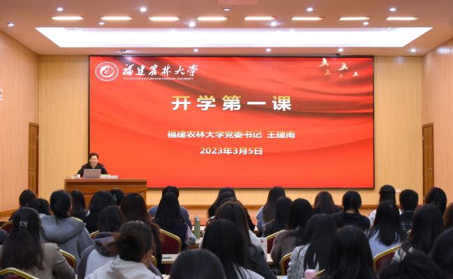 王建南强调,青年大学生是中国特色社会主义事业的建设者和接班人,承载着推进中华民族伟大复兴的历史使命,要找准新时代的历史方位,正确认识世界和中国发展大势,从实际出发找准自身定位,在推进中国式现代化中勇当开路先锋。他以林占熺、廖红教授等先进榜样为例,勉励青年大学生要认清历史机遇,正确认识世界之变、时代之变、历史之变;勇担时代重担,在担当中历练,在尽责中成长;练就过硬本领,用科学的理论武装头脑,用优秀的文化滋养身心,掌握先进的科学知识,培养创新精神和创新能力,提高实践能力,开拓国际视野,为推动农林科学技术创新发展而团结奋斗,共同汇聚起推进中国式现代化的磅礴力量。