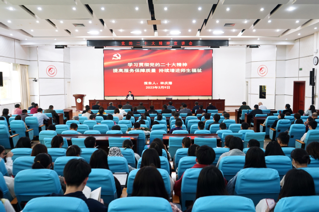 林庆藩从深刻领会和把握党的二十大的主题及主要成果、过去5年的工作和新时代10年的伟大变革、开辟马克思主义中国化时代化新境界的历史责任、以中国式现代化全面推进中华民族伟大复兴的使命任务、全面建设社会主义现代化国家的目标任务、以伟大自我革命引领伟大社会革命的重要要求等方面对党的二十大提出的重大部署和目标任务进行了全面系统的宣讲阐释。林庆藩强调,各单位要提高站位,切实把思想和行动统一到党的二十大精神上来,结合新征程新形势新要求,把自己摆进去、把职责摆进去、把工作摆进去,忠诚捍卫“两个确立”、坚决做到“两个维护”,把学习宣传贯彻党的二十大精神的实际成效转化为推动学校高质量发展的强大动力。
