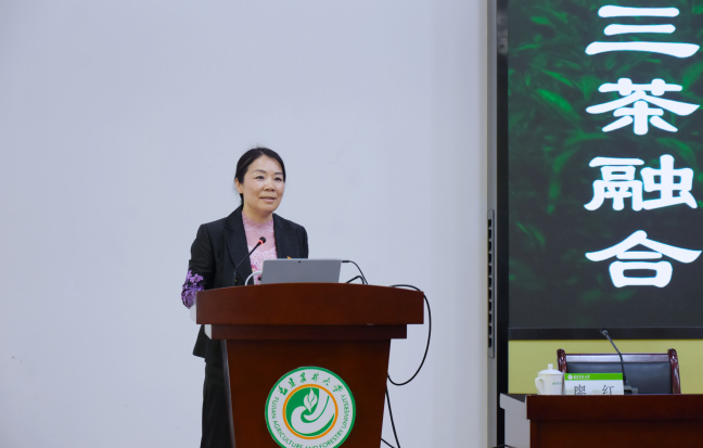 报告中,廖红分享了自己参加十四届全国人大一次会议的心得体会,围绕“什么土壤适宜茶树生长?”“茶树吃什么?”“茶树怎样才能生长得更好、品质更佳?”等问题,深入浅出地解析了自己在“代表通道”上的一番讲话背后蕴含的科技知识,并用亲身经历和质朴语言讲述了她作为一名高校科研工作者和科技特派员如何利用科技创新做给农民看、领着农民干、带着农民赚,助力乡村振兴、把论文写在田野大地上的精彩故事。
