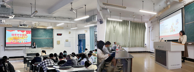 开展一次主题思政课。2022级本科生辅导员吴凌燕讲授了两场“铸牢中华民族共同体意识”主题思政课,共235名同学参与。课程内容包括“我们身边的各民族同学”“铸牢中华民族共同体意识”的提出与内涵、我国的民族政策等内容。引导大学生牢固树立“三个离不开”思想,积极履行宪法规定的关于维护民族团结的公民义务。倡导各民族同学之间要互相关心,互相帮助,要时刻坚定理想信念,永远保持爱国情怀,刻苦学习、掌握知识、练就本领,为国家富强和民族复兴添砖加瓦,增色添彩。