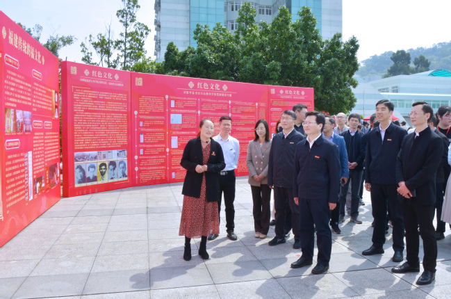 在创福展区,校领导参观了“种绘画‘福’”“扇起祥‘福’”“翰墨颂‘福’”等展位,对同学们将专业特长与中华优秀传统文化相融合创作出来的作品连连称赞,希望他们能发挥所长,带动更多的学生参与其中、享受其中,深入挖掘福文化、侯官文化等身边的中华优秀传统文化价值内涵,在传承和弘扬中华优秀传统文化中陶冶情操、启迪心志。在“非遗画‘福’”展位前,校领导欣赏了油纸伞、软木画、篆刻、版画等金山学院学生用非遗元素设计创作的文化作品,对金山学院结合非物质文化遗产蕴含的思政元素,精心打造特色大思政实践教育的做法表示赞赏,希望各学院持续深入探索形式多样、内涵丰富、特色鲜明的“大思政课”,让学生深入了解中华优秀传统文化,真切感受新时代的发展脉搏,引导学生为实现民族复兴砥砺奋进。